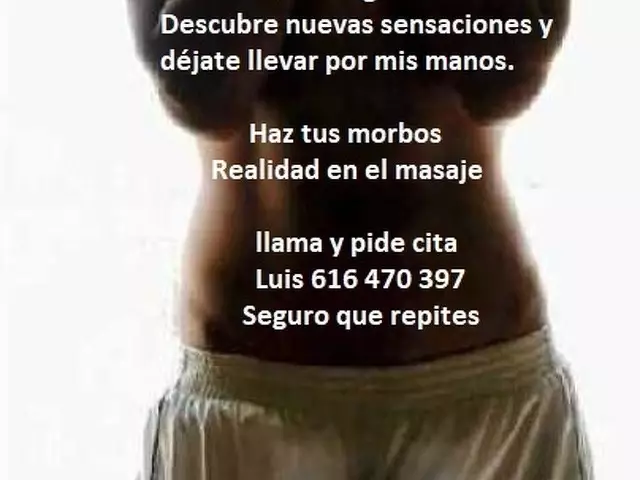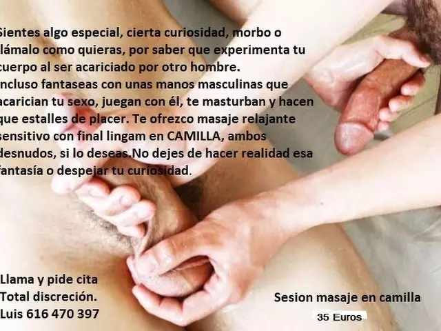 Te gustaría recibir un masaje relajante y genital? Ahora tienes la oportunidad de recibirlo en un lugar cómodo y discreto. El masaje consiste en trabajar la espalda, zona lumbar-gluteos-anal y finalmente genitales hasta alcanzar un punto morboso, excitante y llegar a la eyaculación. Quieres probarlo y descubrir nuevas formas de sentir y gozar? Sesión indicada para heteros curiosos, gays, bix, jovencitos curiosos con ganas de descubrir algo diferente y especial.