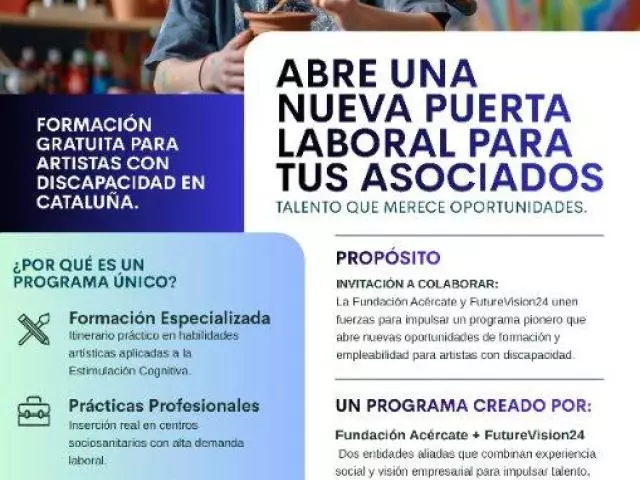 La Fundación Acércate, en alianza con FutureVision24, abre convocatoria para su proyecto “Empleabilidad para Artistas Escénicos con Discapacidad en Cataluña”, orientado a promover oportunidades reales de desarrollo profesional en el ámbito artístico.