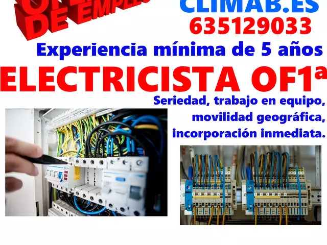 En Climab, S.L., nos encontramos en la búsqueda de ELECTRICISTAS, para unirse a nuestro equipo.