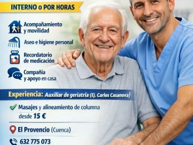 Me permito presentarme y ofrecer mis servicios como cuidadora de personas mayores. Soy una persona responsable, paciente y comprometida, con vocación para el cuidado y bienestar de los adultos mayores. Tengo 33 años y soy de Venezuela. Cuento con experiencia en el acompañamiento de personas mayores, ayudándoles con sus actividades diarias, higiene personal, ...