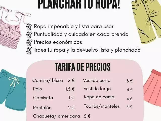 Servicio de planchado de ropa en mi domicilio Consultar tabla de precios También puedo ir a planchar a tu domicilio sería precio según distancia
