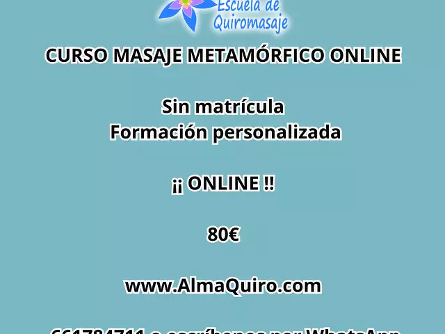 En Alma Escuela de Quiromasaje, estamos emocionados de presentar nuestro nuevo "CURSO DE MASAJE METAMÓRFICO ONLINE". Sumérgete en esta técnica transformadora y descubre cómo desbloquear tu energía vital. ¡Aprende a través de clases online desde la comodidad de tu hogar!