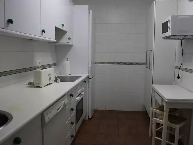 Cocina completamente equipada con con menaje, horno, vitrocerámica, lavavajillas, lavadora, microondas, tostadora, etc.