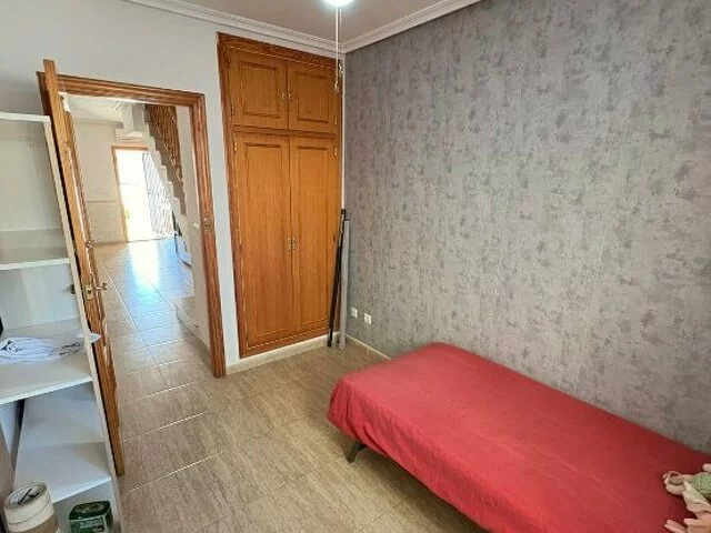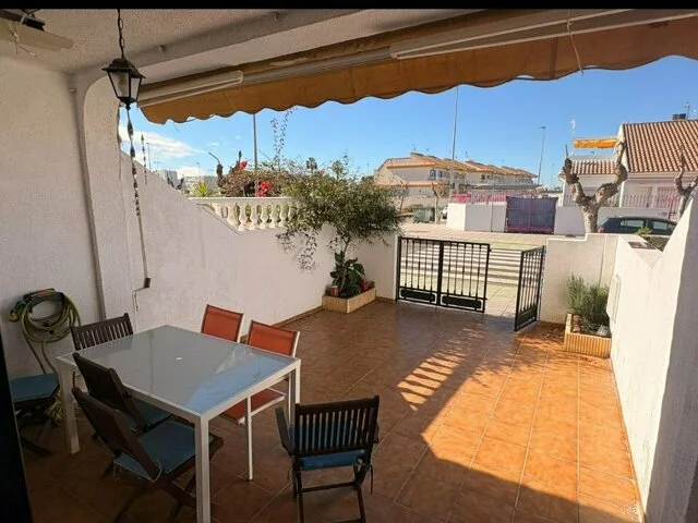 Luminoso dúplex adosado en el Mojón, Torre de la horadada, zona tranquila, a 300 m de playas de arena fina, además se encuentra cerca de supermercados, restaurantes... la vivienda consta de una terraza delantera y patio trasero, un amplio comedor, 3 habitaciones dobles con armarios empotrados, cocina individual con lavadero y dos cuartos de baño.