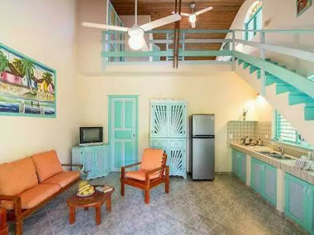 Cocina completamente equipada, abanicos, cuarto de baño.
