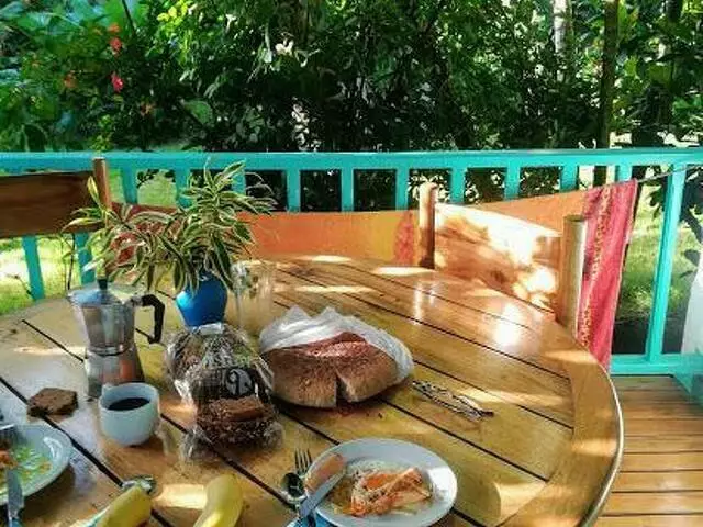 Una hermosa villa completamente amueblada con dos dormitorios con camas delicadamente amuebladas, su baño, comedor con mecedoras para sus descansos en las tardes, tomando aire puro y fresco y viendo una espectacular vista!