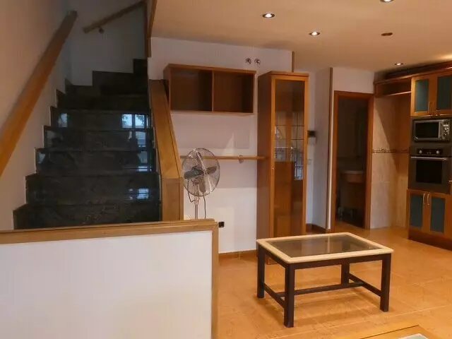 Piso duplex en Colmenar Viejo, consta de salón con cocina americana y un aseo, en la segunda planta se encuentra la habitación con armarios empotrados y el baño con ducha.