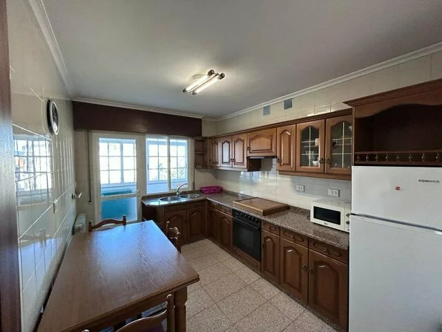 Piso amueblado distribuido en dos zonas: en la zona de día encontramos salón & comedor luminoso con gran ventanal con vistas directas (quinta planta) a la zona ajardinada Fonte dos Ranchos. Cocina amueblada y equipada con electrodomésticos, también con grandes ventanales y vistas directas a toda la zona ajardinada ; una galería cerrada en cristalería adosada a la cocina, muy practica disponiendo además de fregadero en granito. Hall de entrada con mueble de entrada y armario empotrado anexo.