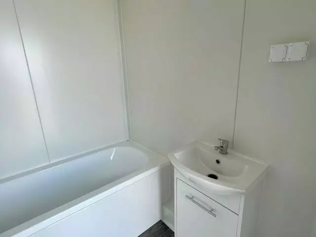 Contenedor de oficina 6,00 x 2,40 m con WC, ducha y cocina americana - Nuevo