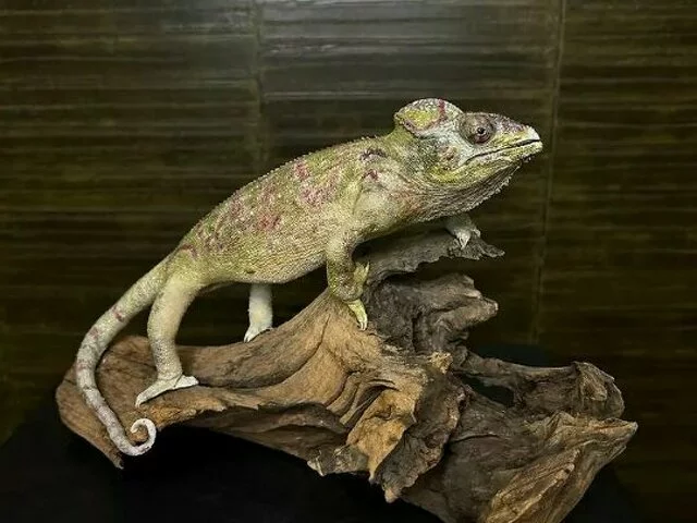 Camaleón montado disponible para coleccionistas y amantes de la decoración exótica. Excelente detalle y calidad artesanal. Ideal para exhibición.