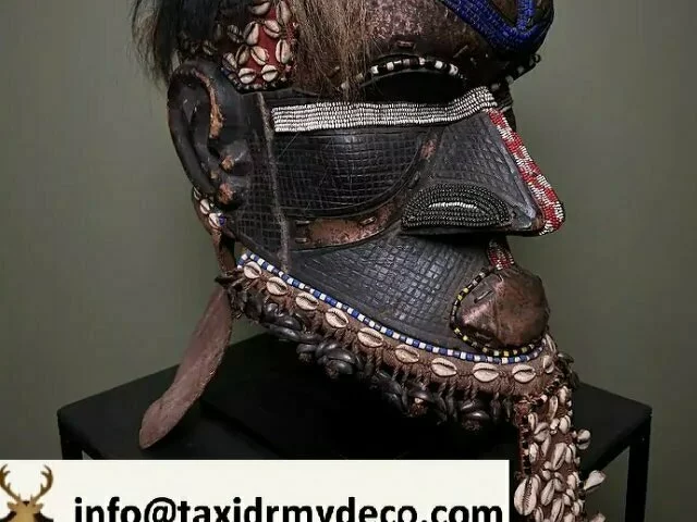Auténtica máscara africana Ngeende Bwoom. Ideal para coleccionistas o decoración exclusiva. Contacto rápido: deje su número de WhatsApp o escríbanos directamente por email o sitio web.