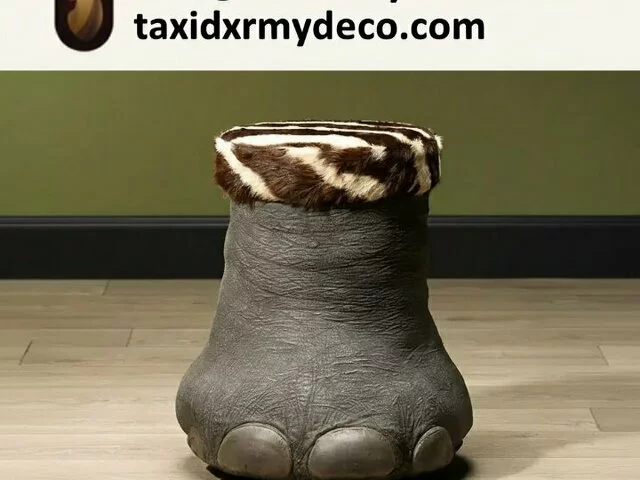 Réplica decorativa de pata delantera de elefante, ideal para exhibición, museos, coleccionistas o escenografía. Pieza no original, sin origen animal.