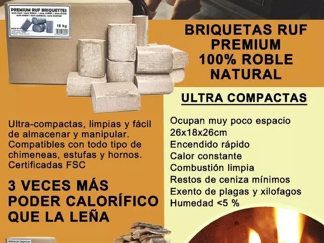 Briquetas de roble 100%, sin aglutinantes, para calentar tu casa.
