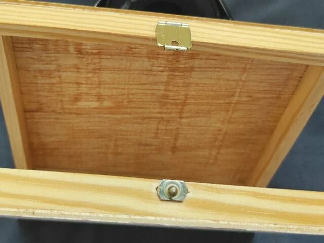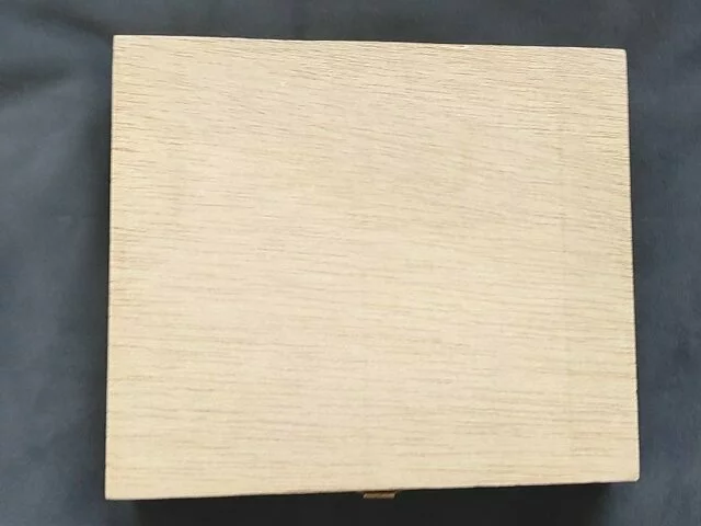 Caja de madera cuadrangular. Medidas aproximadas de la caja en centímetros 6x14. Medidas hueco caja 14x13,5. Ideal como joyero o uso decorativo. Cierre metálico de bisagra en perfectas condiciones. Para actualizar al gusto.