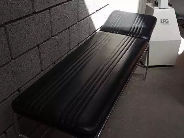 Se vende una camilla negra en estado aceptable (hay que cambiarle la tabla) por 29€. Sus medidas son: 55 de ancho x 180 de largo