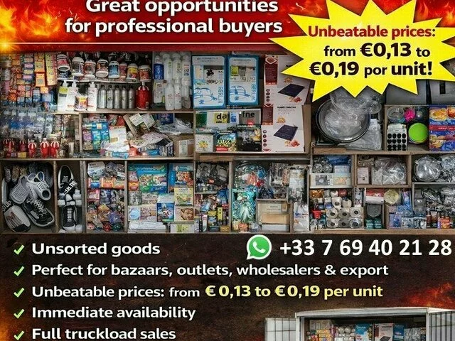 Ofrecemos lotes de productos nuevos y sin vender, nunca devoluciones de clientes, procedentes de una cadena de tiendas europea.