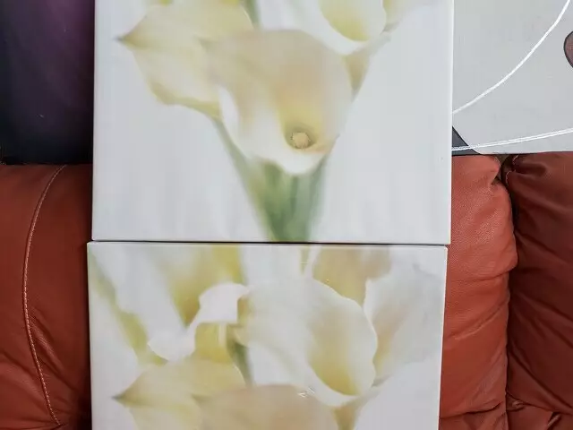 Vendo estos 2 cuadros de un lirio blanco para colocar en la pared, en buen estado, a un precio de 14€ (cada uno a 7€). Sus medidas son: 48.5cm ancho x 48.5cm alto