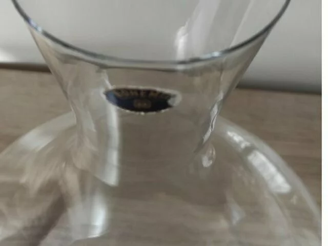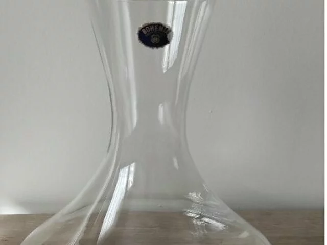 Decantador de vino, en cristal de bohemia de muy buena calidad. Solo uso decorativo en estanteria. Recogida metro Barajas.
