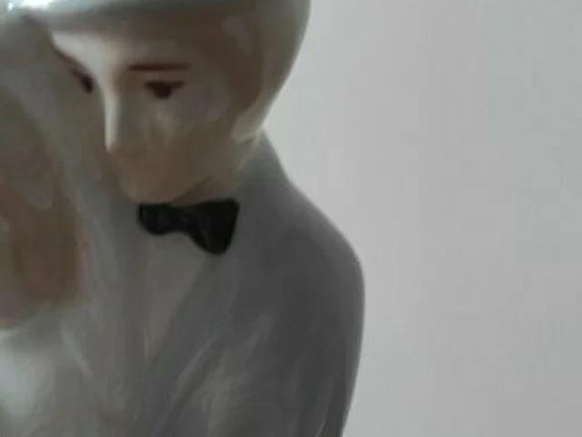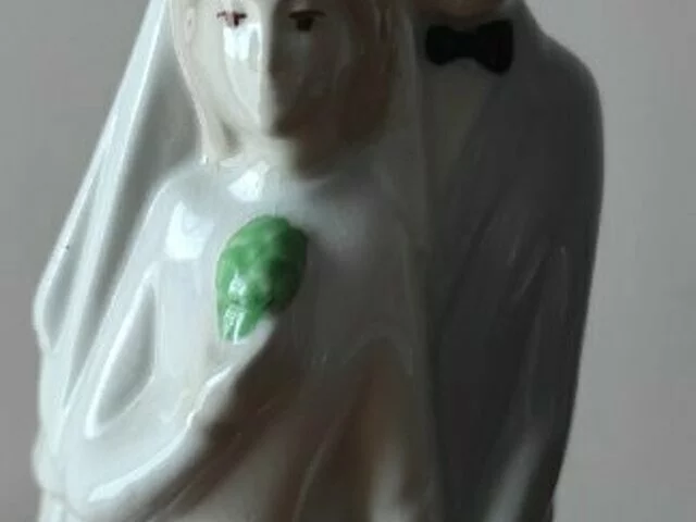 Pareja de novios en porcelana tipo Lladró o similar, para adorno o para tarta nupcial. Medidas aproximadas base 8 cms. , altura 22. No tiene taras ni desconchones.