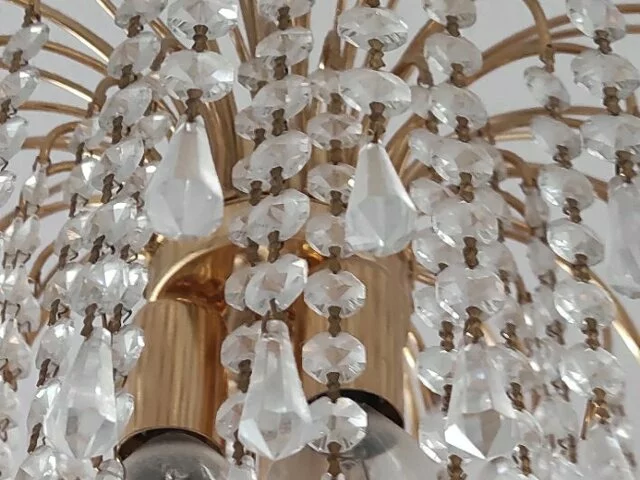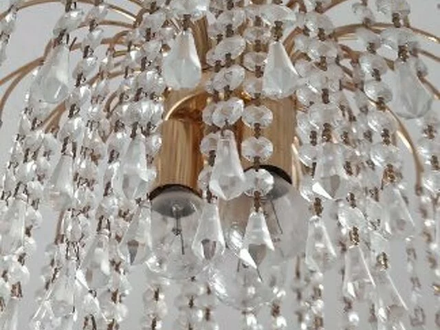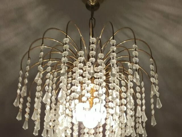 Lámpara de techo tipo araña de cristal de muy buena calidad. Medidas aproximadas 55 de alto y 43 de diámetro, con tres bombillas. No le falta ningun cristal. Se admiten ofertas serias. Preferible recogida zona Alcampo Moratalaz. Metro Estrella/ Vinateros (línea 9 metro Madrid).
