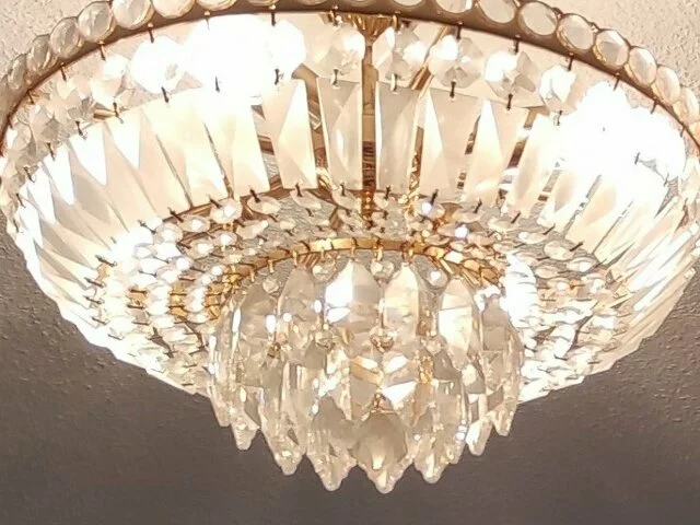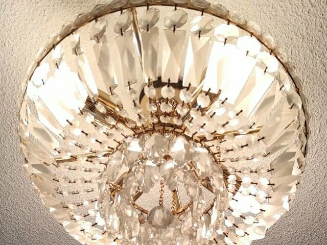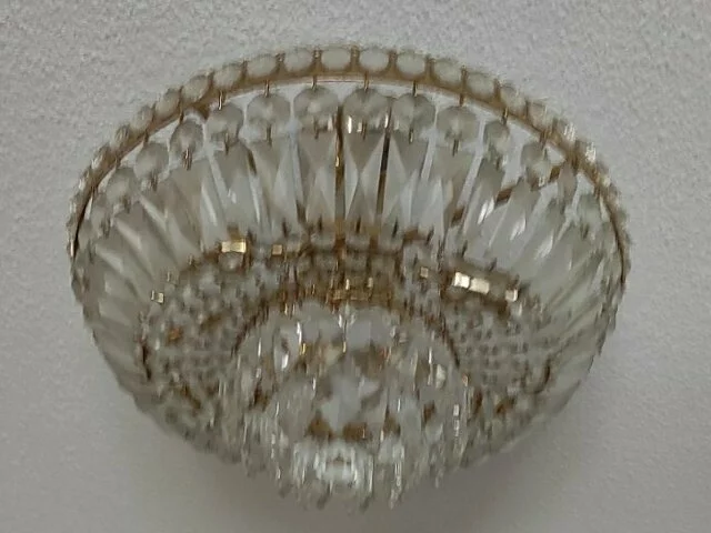 Lámpara de Salón de cristal de muy buena calidad y metal dorado, con 4 focos. Ideal para Salón, habitación... Como nueva. Medidas aproximadas en centímetros: 40 de ancho y 33 altura. Recogida preferiblemente en mano por ser muy delicado en la zona Alcampo Moratalaz. Metro Estrella/ Vinateros (línea 9 metro). Se admiten ofertas serias.