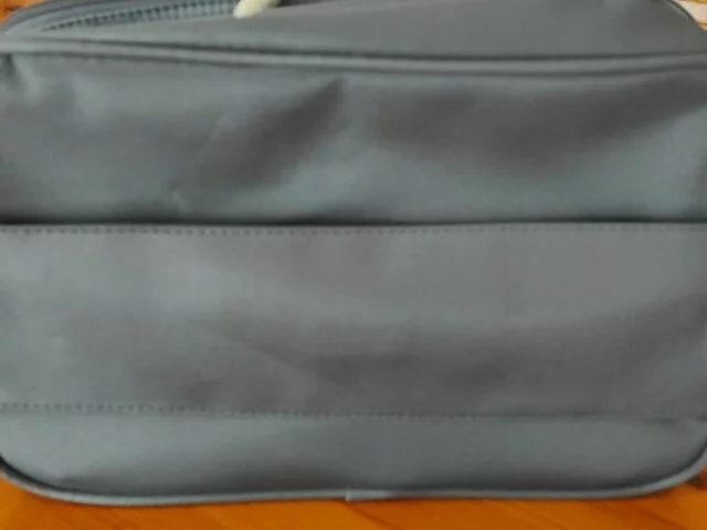 Neceser en color gris de Antonio Miró. Medidas aprox.37x26x16. A estrenar, con cierre de cremallera, asa metálica, bolsillo exterior con cremallera y bolsillo interior. Con tela lateral para poder llevar en el asa de las maletas cómodamente