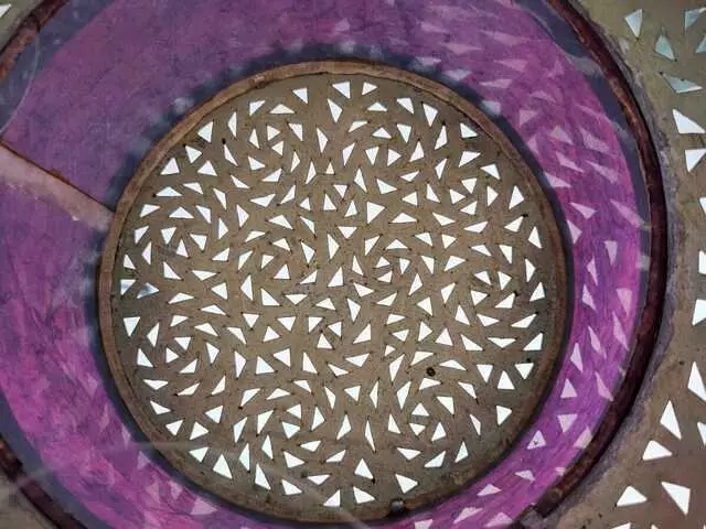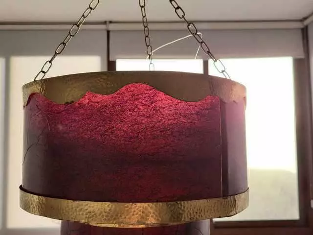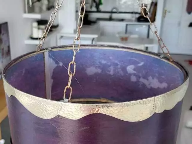 Portavelas colgante de cristal de color magenta, con un estilo árabe, en perfecto estado, como nuevo (nunca se ha usado). Medidas: alto 28 cm, ancho parte superior 95 cm. Precio: 25€