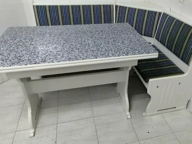 Se vende mesa con butacas o asientos esquineros de madera. Mesa con medidas de 1,10m extensibles a 1,70 m. Butacas o asientos esquineros con medidas de 1,50m x 1,20m. Perfecto estado. Por 55€
