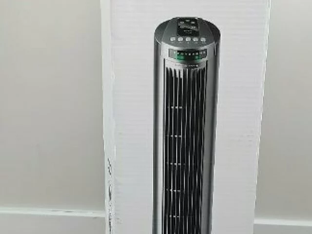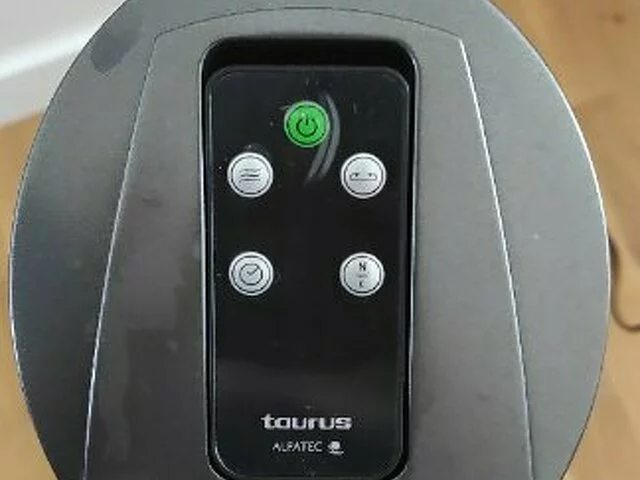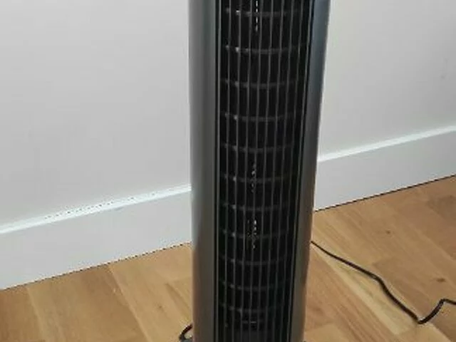 Ventilador vertical tipo torre. Alpatec de la marca Taurus. En color negro. Sólo usado un verano ya que pusimos aire acondicionado. Alguna marca o mancha propia del uso, por lo demás como nuevo. Características técnicas en foto. Con mando a distancia y manual de instrucciones. Medidas en caja. Recogida en metro Barajas.