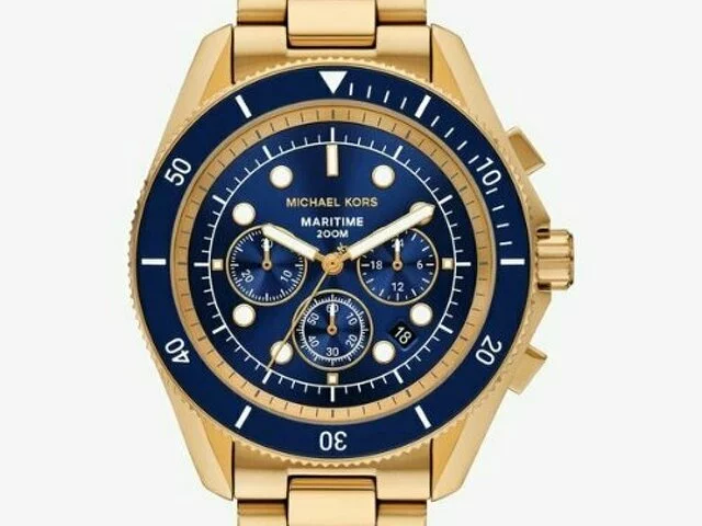 Haz tuyo el Michael Kors TRADITIONAL MARITIME y luce la elegancia del dorado con la precisión del cronógrafo. ¡Un reloj que nunca pasa desapercibido!