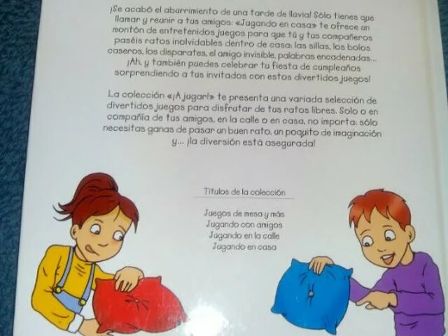 Se vende libro de segunda mano, en perfecto estado, como nuevo, de tapa dura, titulado jugando en casa , en el que hay un montón de juegos e ideas para jugar en casa con los niños. ISBN 8466212442. Regalo bonito y barato, ideal para regalar en cumpleaños y Navidades