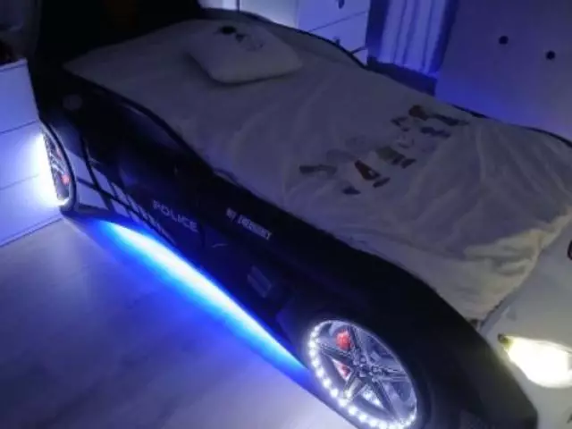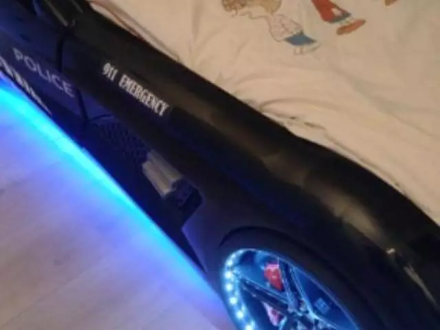 La cama es preciosa, reproduce sonidos de aceleración, marcha y alarma de coche. También tiene luces intermitentes; es encantadora. ¡Producto nuevo!
