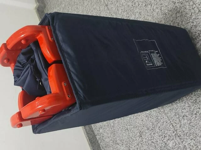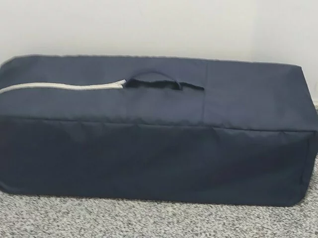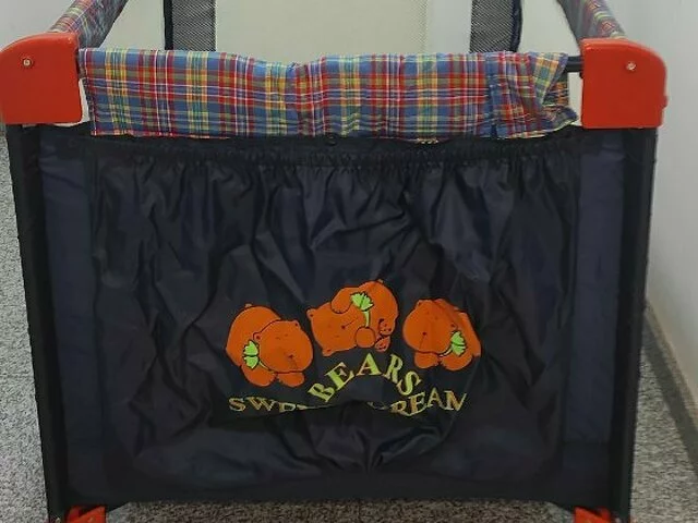Cuna de viaje en color azul y estampados. Con colchón y bolsa lateral para guardar pañales, juguetes. Bolsa de cremallera y asa para su fácil traslado. Medidas de la cuna 108x77x84. Medidas plegada 88x24x30. Se incluye instrucciones aunque se abre y cierra con facillidad. Muy bien cuidada aunque puede tener algún signo de uso.