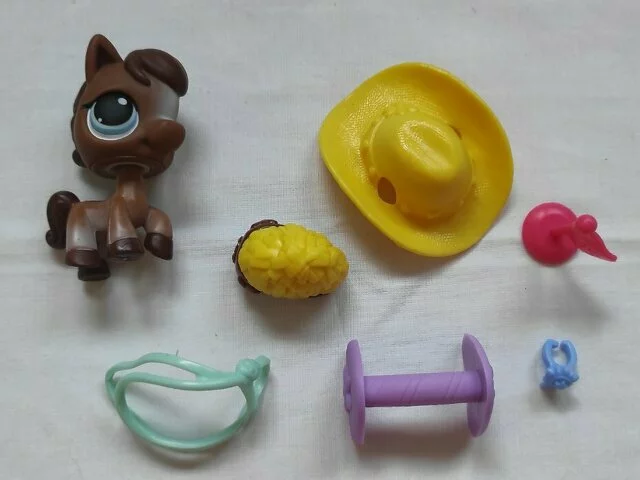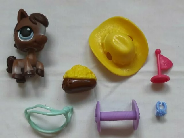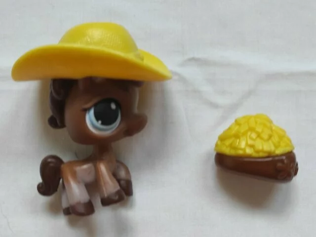 Se vende LPS, es un caballo blanco en color marrón, con sombrero tejano amarillo y accesorios varios. Original Hasbro. Siempre en estantería, sin uso. Está retirado y agotado. Recogida en metro Barajas (línea 8 de metro).