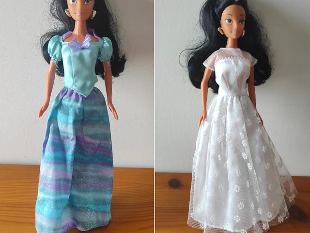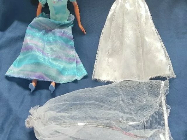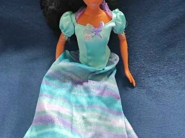 Muñeca Jasmine de la película Aladdin de Disney. Se entrega con dos vestidos uno de fiesta en tonos azules y morados con toques brillantes y zapatos y otro vestido de novia con su velo. Muñeca original de Hasbro. Se entrega lo que se ve en las fotos. Recogida en Barajas.