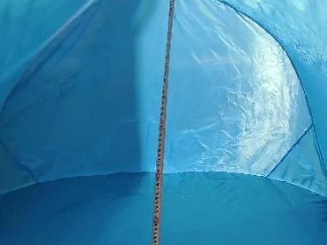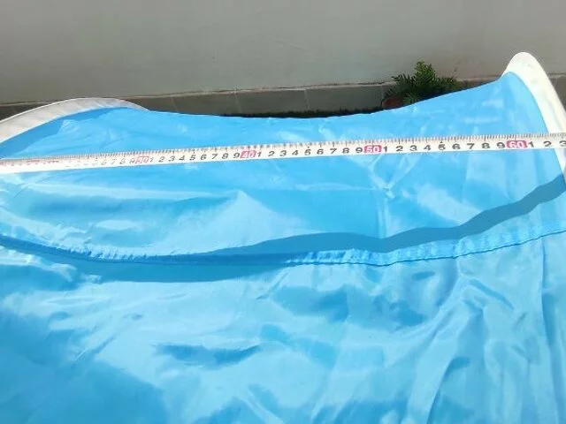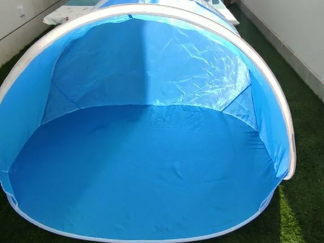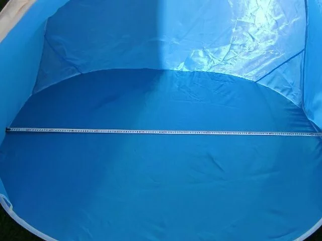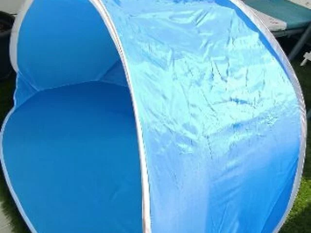 Quita vientos plegable en color azul. Utilizado pocas veces. Bien conservado. En color azul. Medidas aproximadas base suelo 100, ancho 144, alto 85, fondo 64. Cerrada 65 centimetros de diámetro. Con instrucciones para su montaje. Se entrega en metro Barajas.