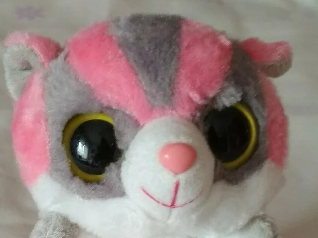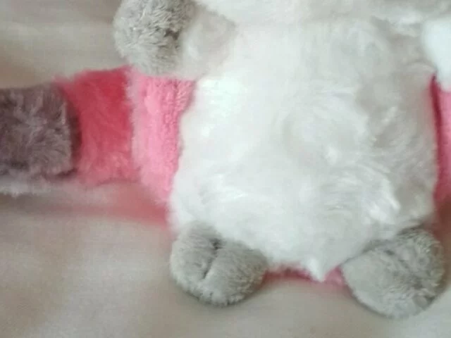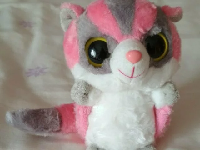 Peluche pequeño, de unos 14 centímetros de alto en colores muy bonitos rosa y gris. Es suave y adorable. Nunca utilizado, como nuevo. Recogida en metro Barajas.