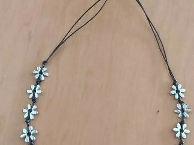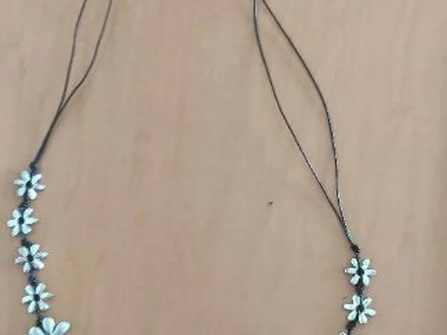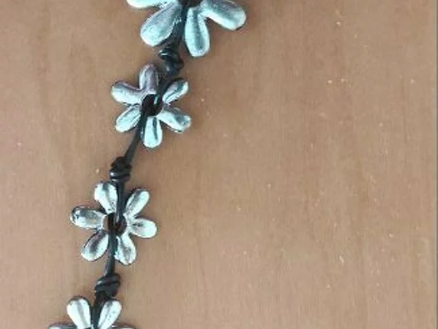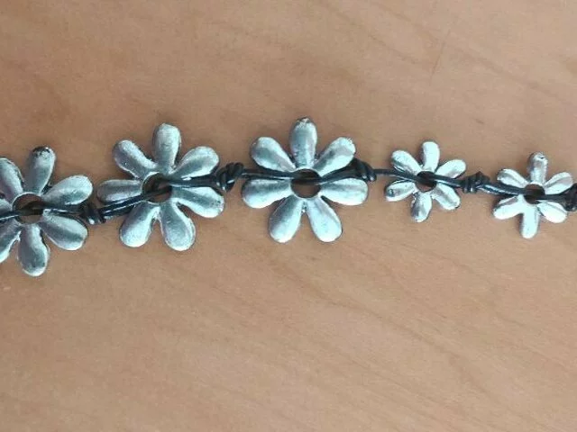 Original colgante compuesto por flores de metal de diferentes tamaños unidas entre si. Largo total aproximado 46 centímetros. Nunca utilizado. Siempre en joyero. Recogida en metro Barajas