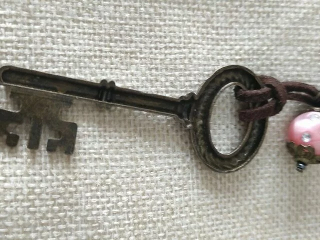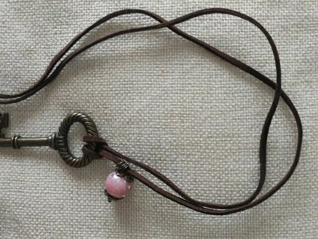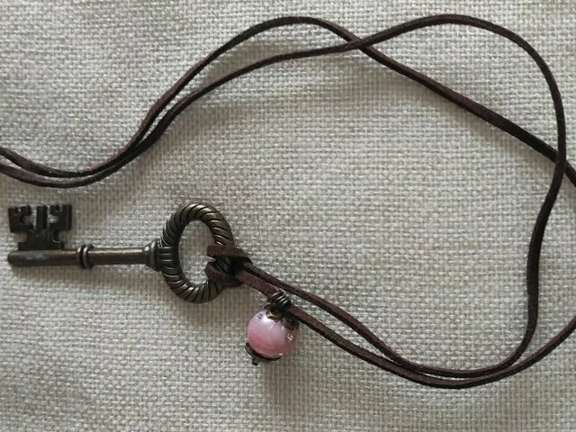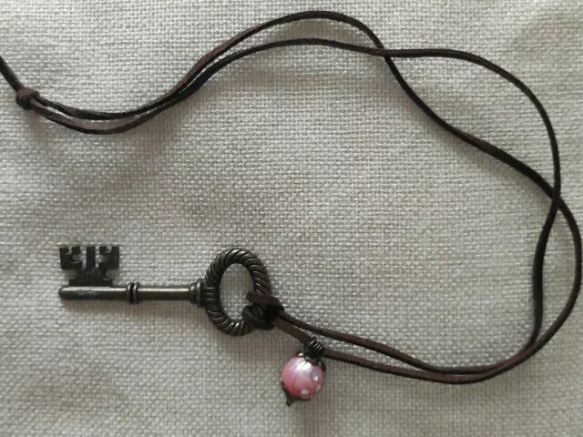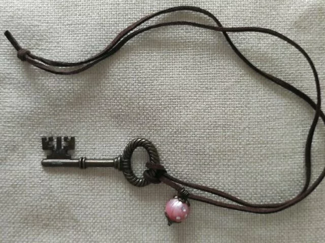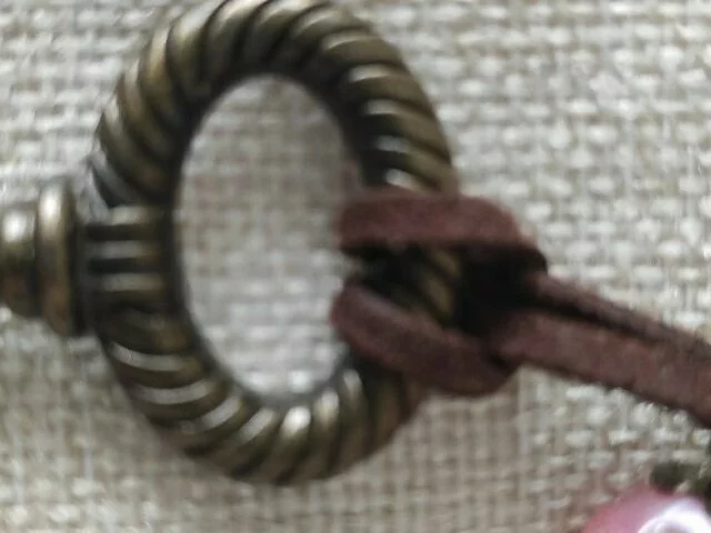 Colgante redondo de metal envejecido de 7 centímetros de diámetro, con cordón cuero adaptable en altura. Muy bonito. Recogida en metro Barajas