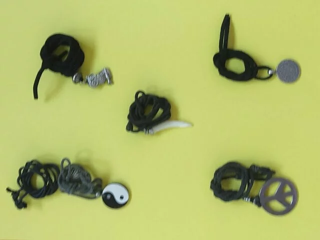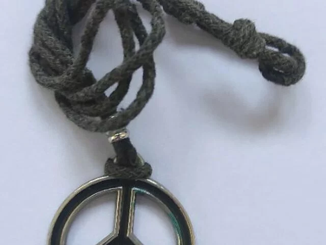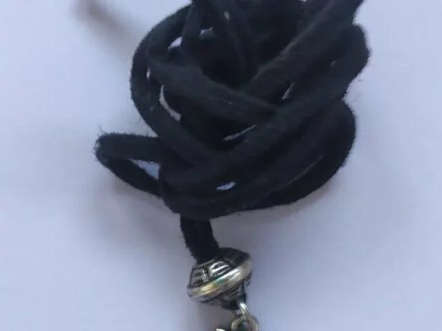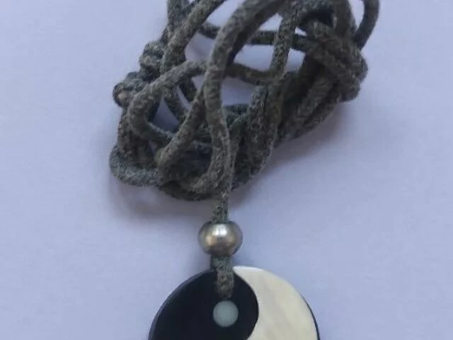 Colgante con símbolo celta con cordón negro. El colgante está en perfectas condiciones, el cordón puede tener alguna señal de uso. Recogida en metro Barajas.