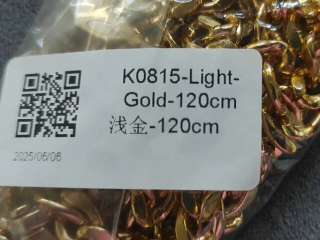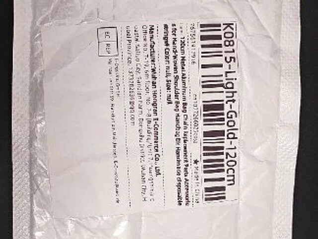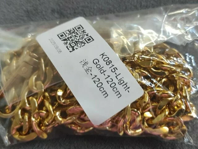 Cadena para bolso de metal en color dorado, con una longitud de 120 centímetros, con enganches. Lo compré por error y se pasó el periodo de devolución. Como nuevo, a estrenar, en su embalaje original sin abrir.