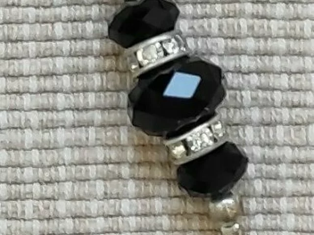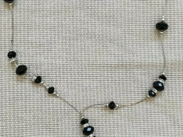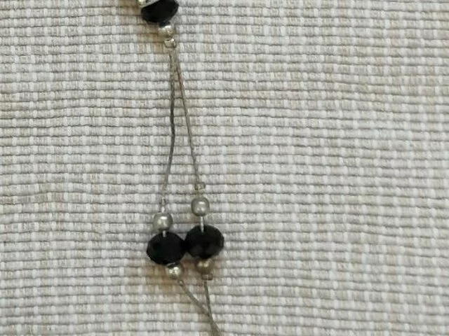 Elegante colgante de bisuteria y cuentas negras y plateadas. Recogida en metro Barajas.
