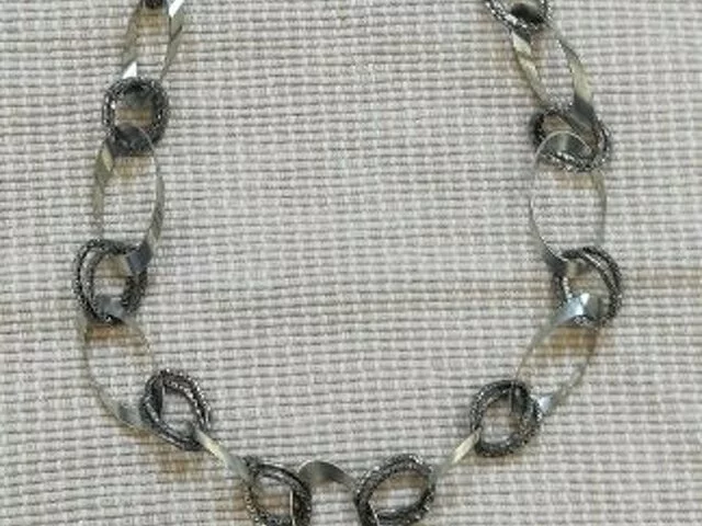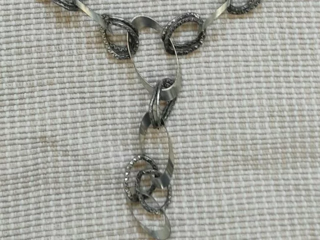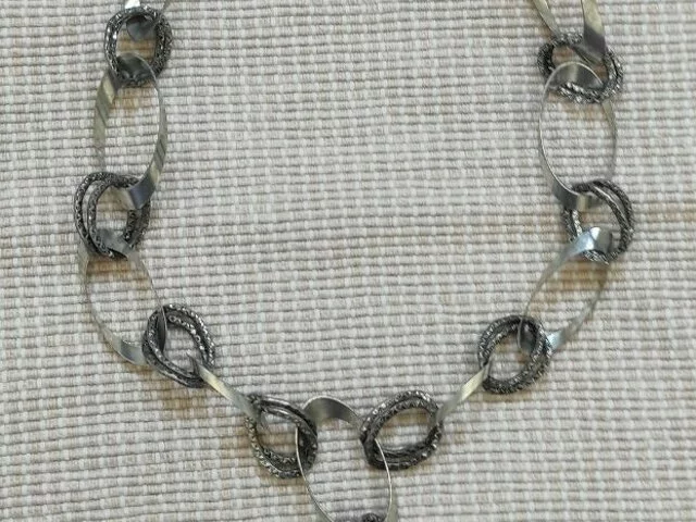 Colgante bisuteria de eslabones en metal plateado, Se puede poner diferente altura. Recogida en metro Bararajas.