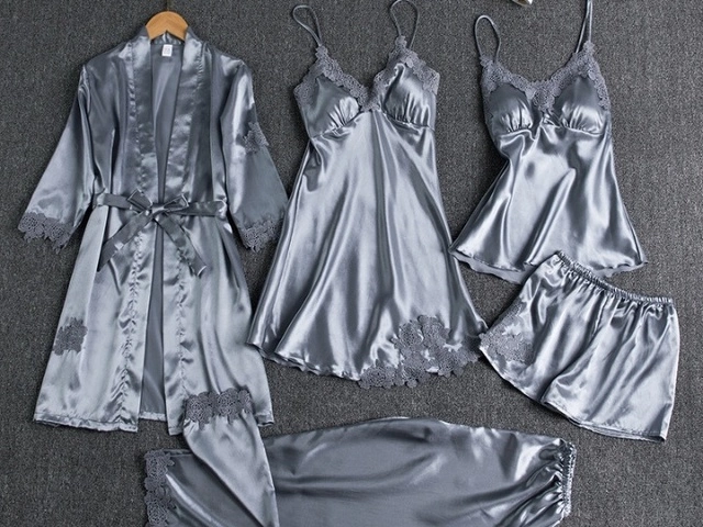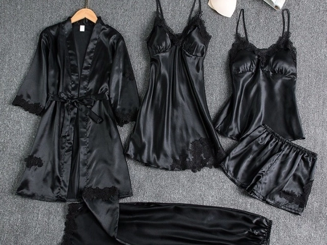 Conjunto de pijama de satén , ideal para estar cómoda en casa.