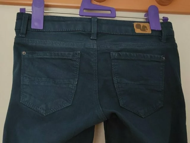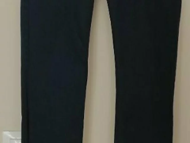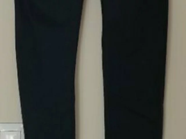 Pantalón largo tipo denim en color azul oscuro. Medidas aproximadas: cintura 33, cadera 40, largo total 95, Talla XS. Muy poco utilizado. Marca Sfera. Recogida en metro Barajas..