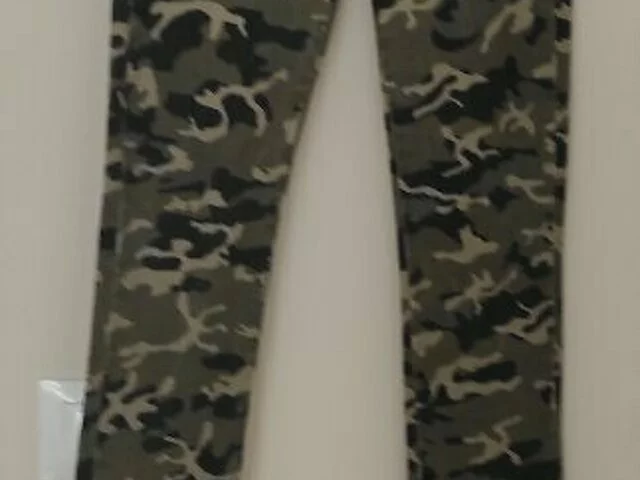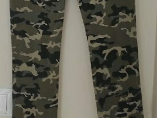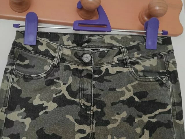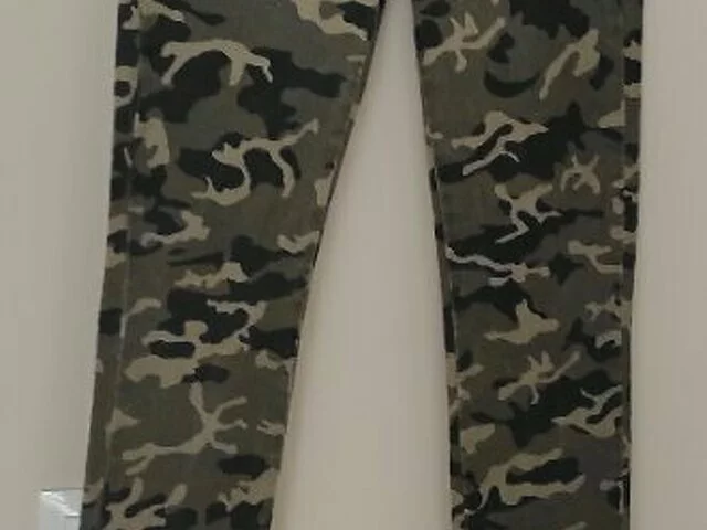Pantalón largo tipo denim con estampado de camuflaje. Medidas aproximadas: cintura 33, cadera 40, largo total 95, Talla XS. Muy poco utilizado. Recogida en metro Barajas