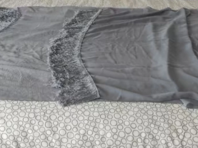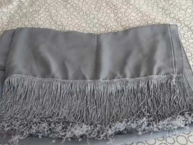 Pañuelo de mujer, tipo echarpe en color gris con flecos. El tamaño aproximado total es de 210 x 70 (los flecos 12 cms). Composición 70%poliester y 30 viscosa. Solo una puesta, al lavarlo algunos flecos quedaron sueltos. Recogida en metro Barajas.
