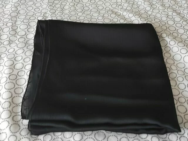 Pañuelo negro de tela fina, tipo echarpe, ideal para ceremonias, sencillo y elegante. Medidas aproximadas en centímetros 205x73. Como nuevo, una sola puesta. Se entrega limpio. Se vende por 20 euros. Recogida en metro Barajas.