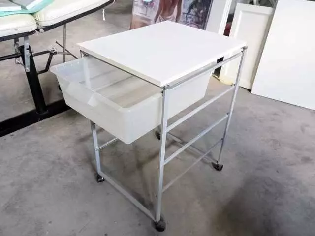 Vendo carrito auxiliar para salones de estética y belleza o clínica médica de color blanco. Incluye 3 estantes o baldas y 1 bandeja para colocar y organizar los distintos productos y herramientas de trabajo de una manera práctica y cómoda. Además posee cuatro ruedas de goma con giro 360º. Sus medidas son: 71 de alto x 53.5 de ancho x 44.3 de profundidad. Está en perfecto estado, a un precio de 40€.
