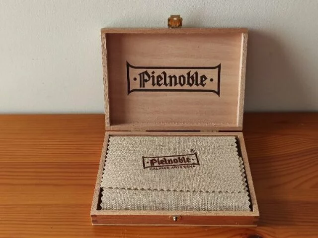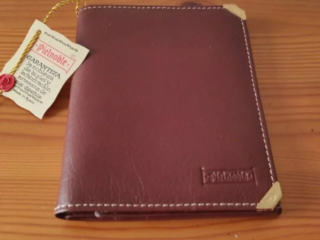 Billetera para hombre de la prestigiosa marca Piel Noble, en piel de primerísima calidad en color marrón y remaches metálicos. Con certificado de autenticidad. Viene en una preciosa casa de madera. Medidas aproximadas 12x9. Con un montón de compartimentos. para billetes, tarjetas... y más. Nunca utilizada.